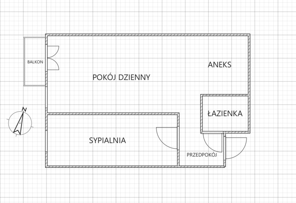 – pokój dzienny (~ 19,8 m²) z wyjściem na balkon