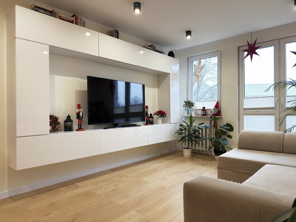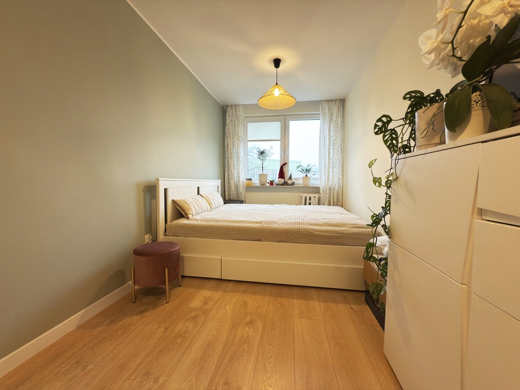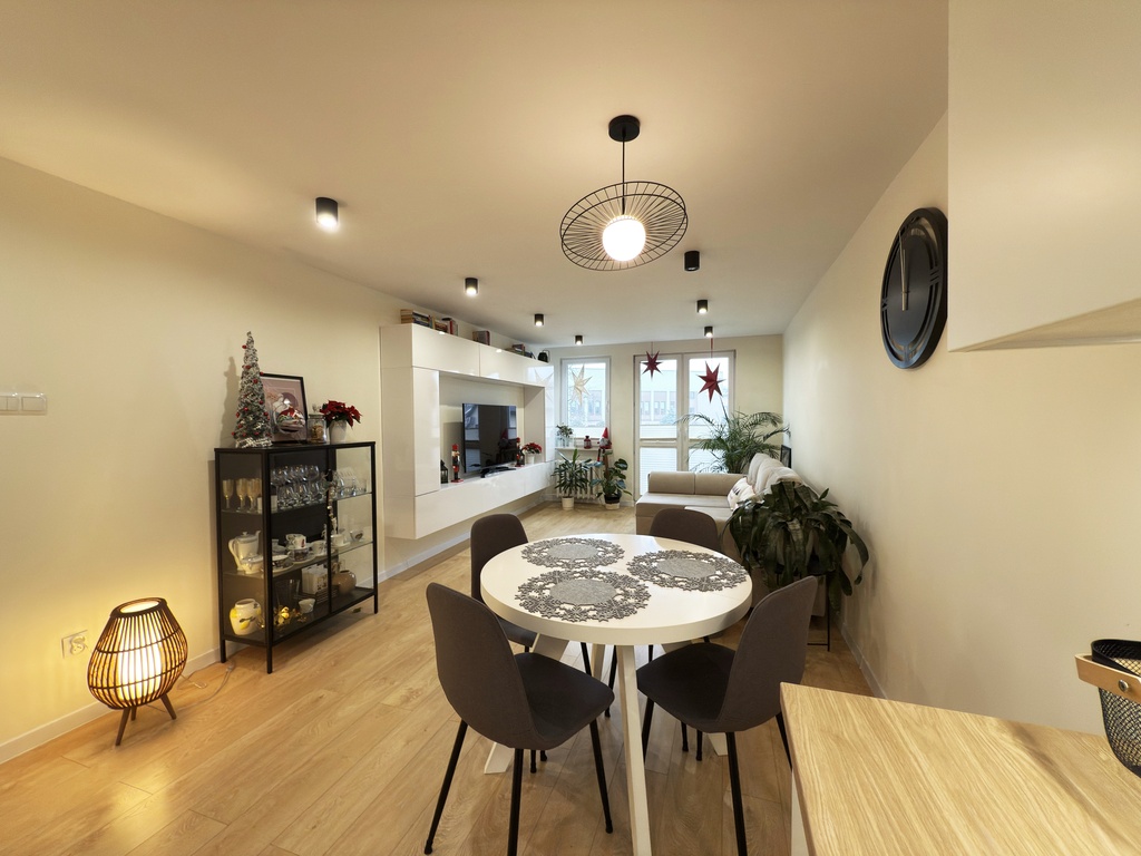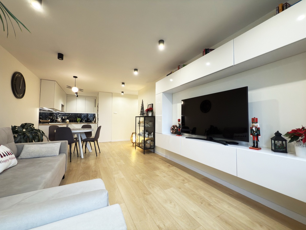 Mieszkanie w stanie do wprowadzenia. Remont generalny został przeprowadzony w roku 2022 (z wyjątkiem łazienki, ta była remontowana w 2016 r.). Wymieniono instalacje elektryczną oraz wodno-kanalizacyjną, zrobiono wylewki, gładzie oraz podwieszony sufit. Pokój dzienny połączony jest z aneksem kuchennym co sprawia, że mieszkanie jest bardzo funkcjonalne i czuć w nim przestrzeń.