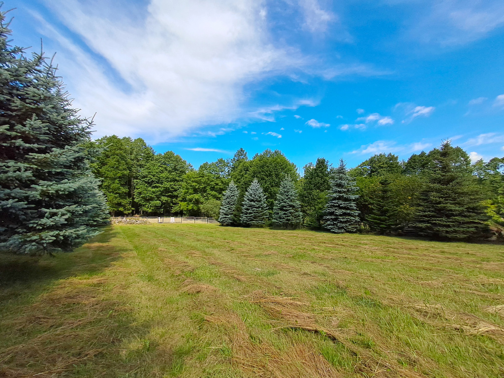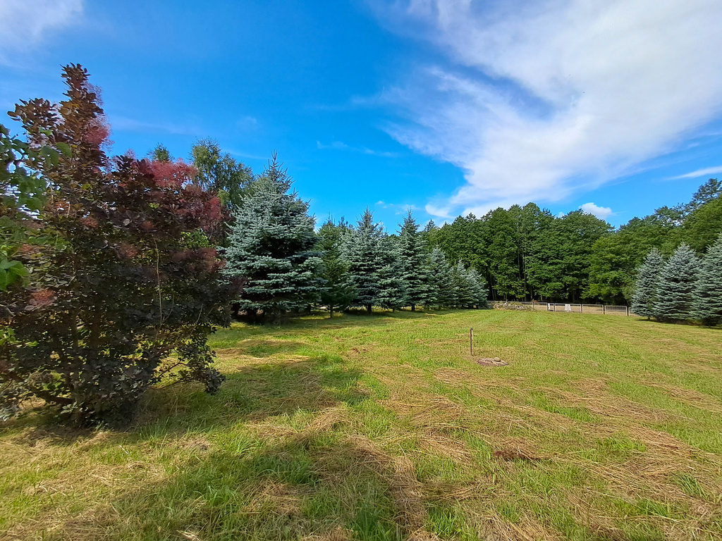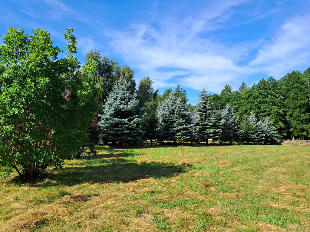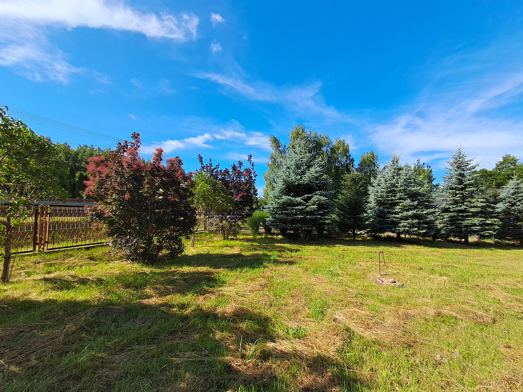 Największym atutem tej nieruchomości jest jej niepowtarzalny, naturalny klimat – po obu stronach działki rosną dorodne, 15-letnie świerki, które tworzą zieloną, kameralną aleję zapewniającą prywatność i wyjątkową atmosferę. Działka ma idealne proporcje (ok. 25,5 m szerokości), jest częściowo ogrodzona (1700 m2), z bramą wjazdową i furtką, a co najważniejsze – posiada pełne uzbrojenie w media.