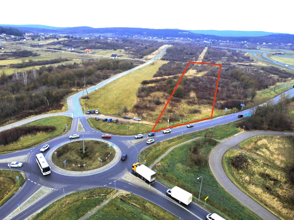 Działka mieści się przy rondzie, które prowadzi w kilka stron: na obwodnicę Chęcin a dalej do Małogoszcza, do centrum miasta, do Morawicy oraz do Kielc. Jest to rondo przez które przejeżdża najwięcej aut w całej gminie Chęciny.