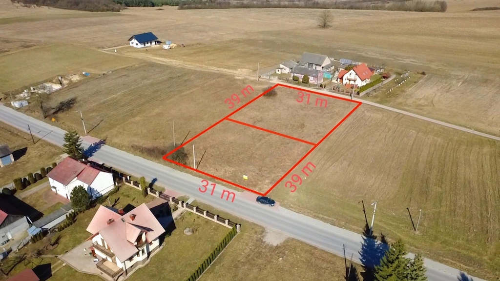 W sprzedaży są dwie działki o powierzchni 1186 m2, o wymiarach 31 m x 39 m. Każda z działek ma dostęp do drogi gminnej asfaltowej. Bezpośrednio przez działkę przebiega siec energetyczna, a w asfalcie od strony północnej mieści sieć wodna.