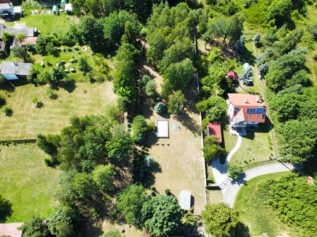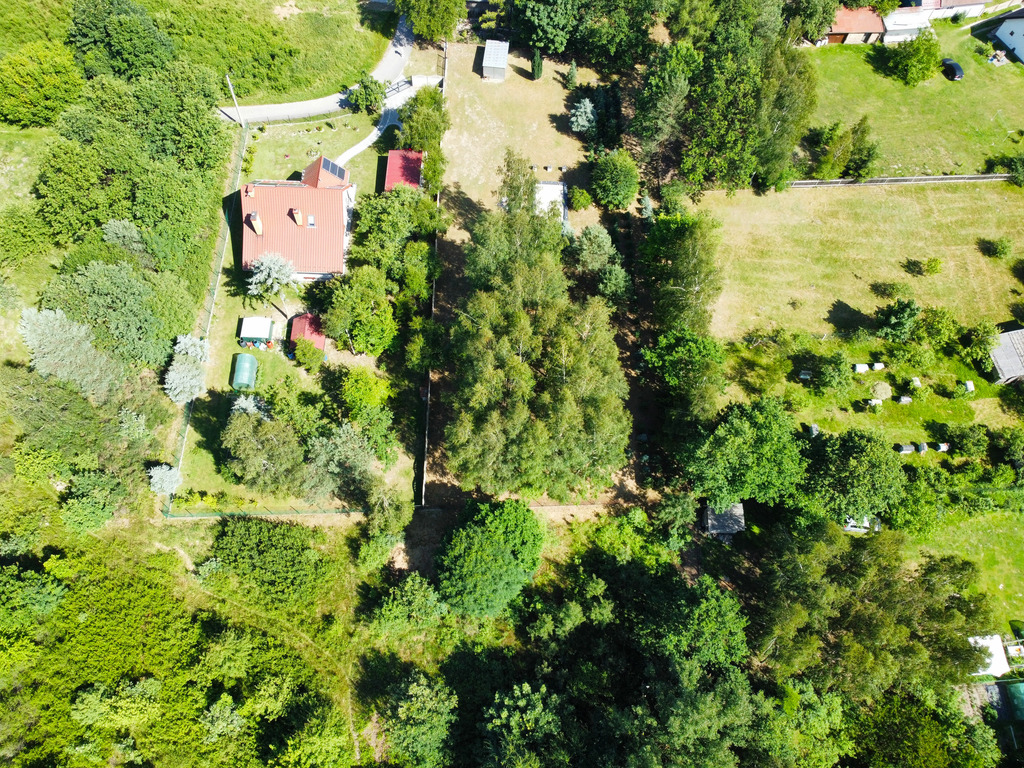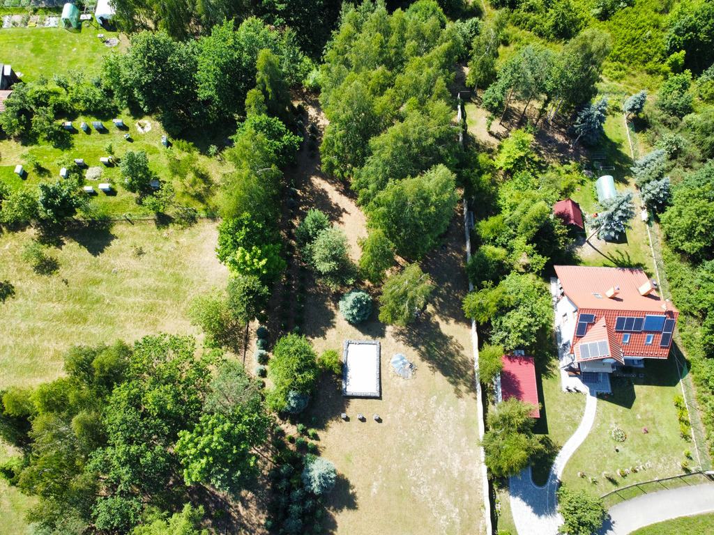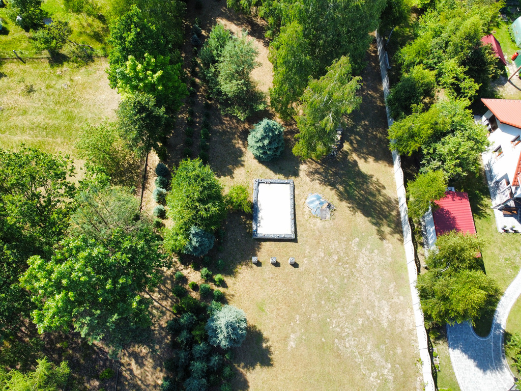 Powitalny krajobraz: Działka o wymiarach 28,4m x 65,8m wita Cię zielenią. Nasadzone jodły tworzą malowniczy, iglasty zagajnik, a w głębi rozciąga się urzekający lasek brzozowy – prawdziwa symfonia natury!