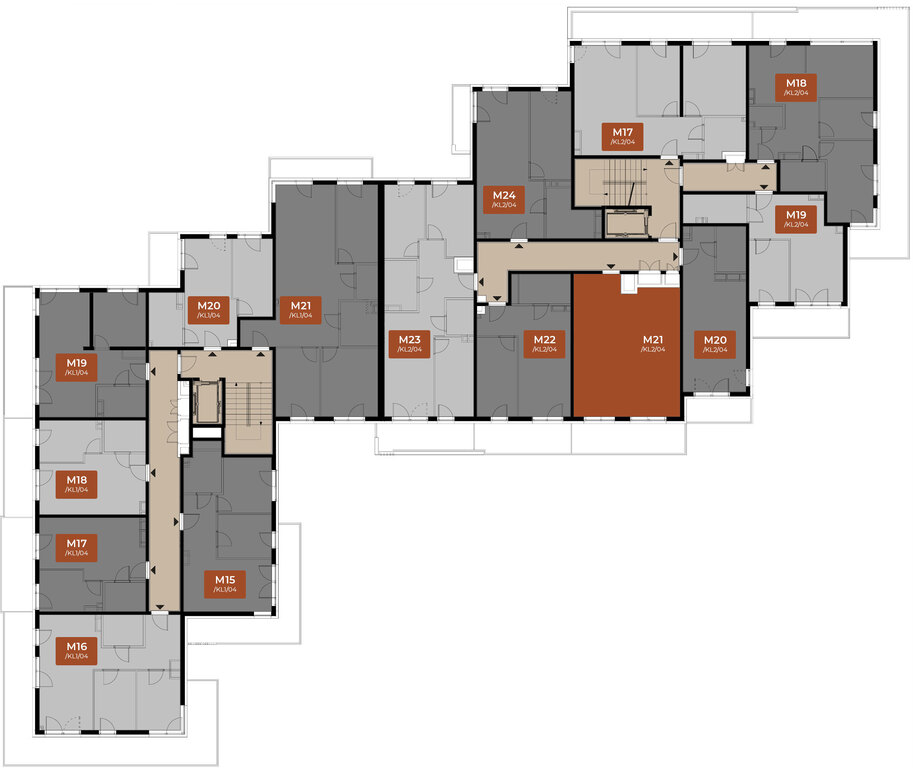 Nieruchomość to kawalerka z aneksem opisana na planach jako M21_KL2_04 na 3 piętrze czteropiętrowego budynku mieszkalnego „Parkowa Relaks”.