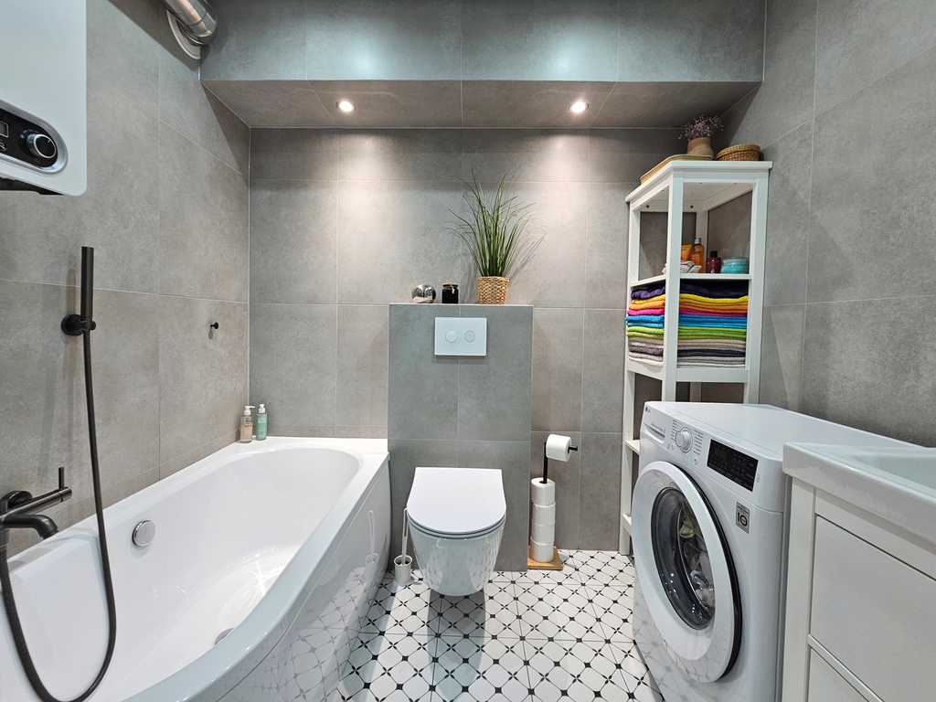 Łazienka z wanną– wymienione piony, nowy piecyk Junkers.