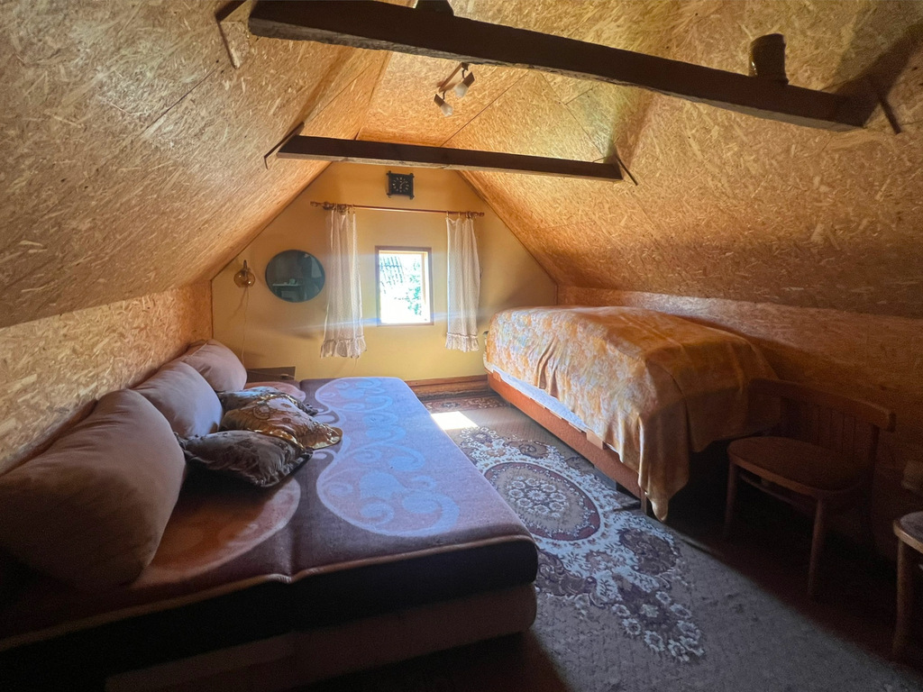 - Drewniana konstrukcja, wymienione okna z okiennicami, przytulne wnętrze z dużym pokojem, kuchnią i gankiem na parterze. Na piętrze czeka dodatkowy pokój z dwoma łóżkami i schowek. Idealne miejsce na weekendowe wypady lub całoroczne zamieszkanie.