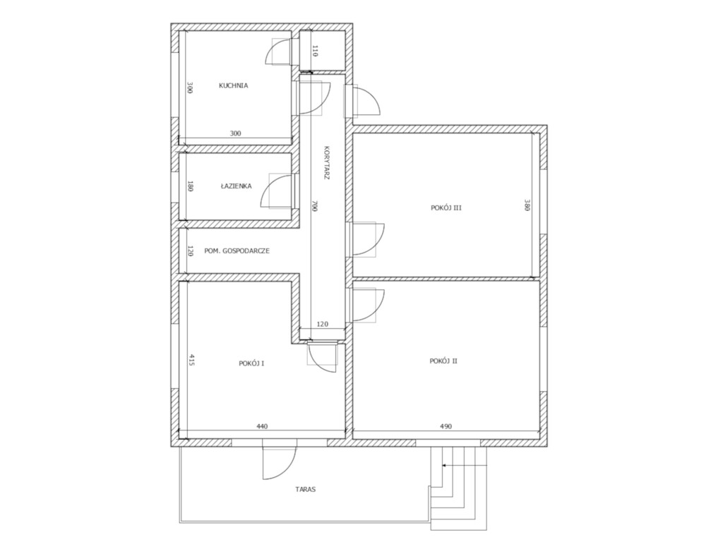 – pokój I (16,1 m²) z wyjściem na taras (2,1 x 6,5 m)