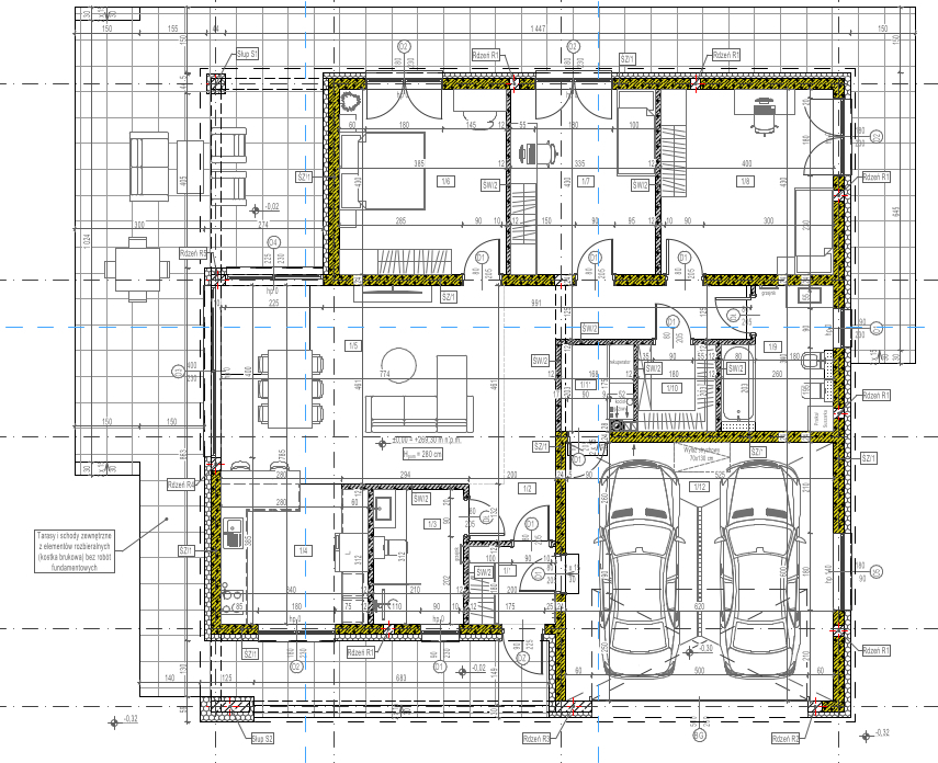 Powierzchnia całkowita 198 m2. Garaż dwustanowiskowy w bryle budynku o pow. 37 m2.