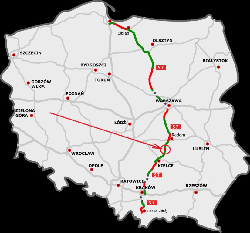 Bardzo dobry dojazd z drogi ekspresowej nr 7 zarówno za pomocą zjazdu Szydłowiec-Południe jak i Szydłowiec-Centrum.