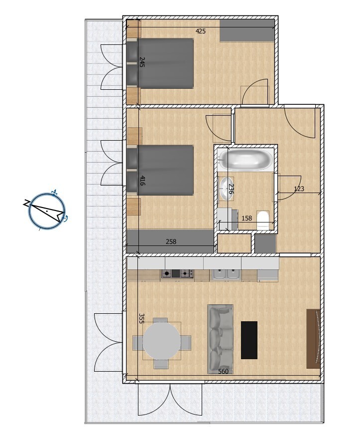 3-pokojowy apartament w stanie deweloperskim o powierzchni 50,91 m² na pierwszym piętrze z balkonem w czterokondygnacyjnej inwestycji.