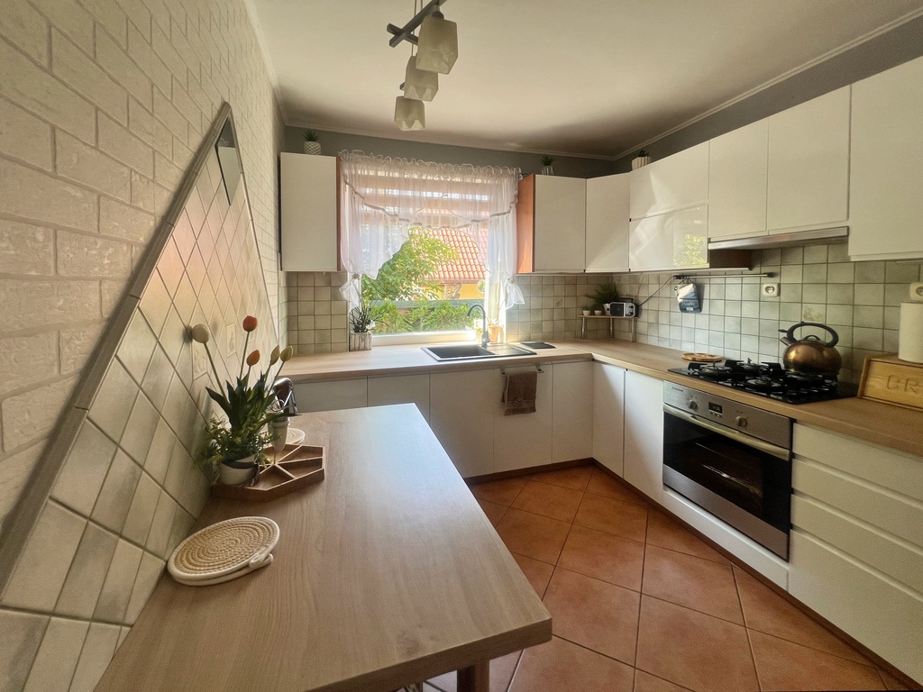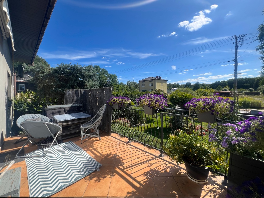 Wyobraź sobie poranek. Wychodzisz z jadalni prosto na taras, gdzie czeka na Ciebie filiżanka kawy i widok na zadrzewioną działkę. Słońce przebija się przez liście, a cisza przerywana jest tylko śpiewem ptaków. To nie wakacyjna wizja — to codzienność w tym domu.