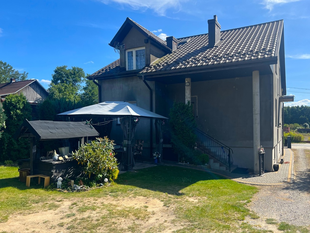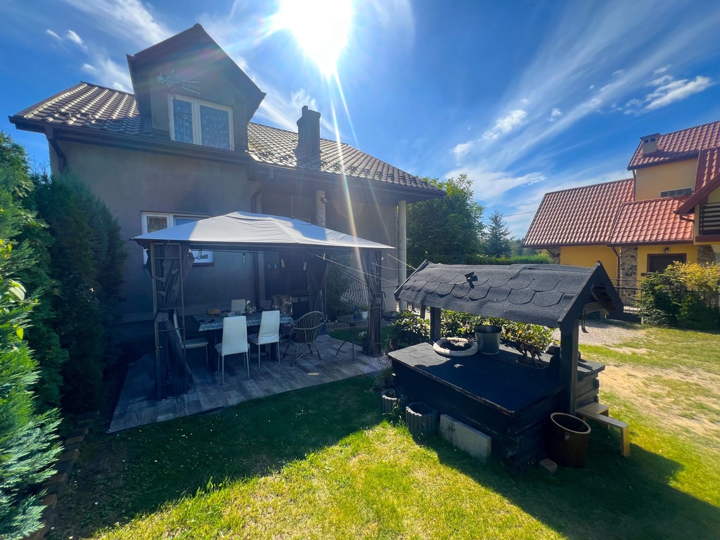 Za domem znajduje się strefa grillowa — to tu odbywały się letnie spotkania przy kiełbaskach, dzieci biegały boso po trawie, a dorośli rozmawiali do późna.