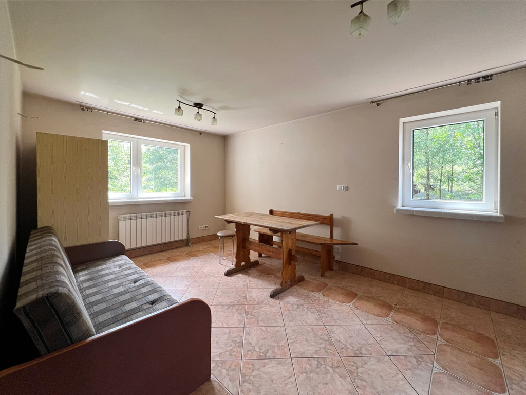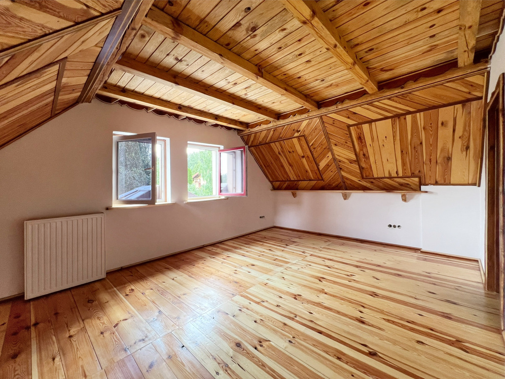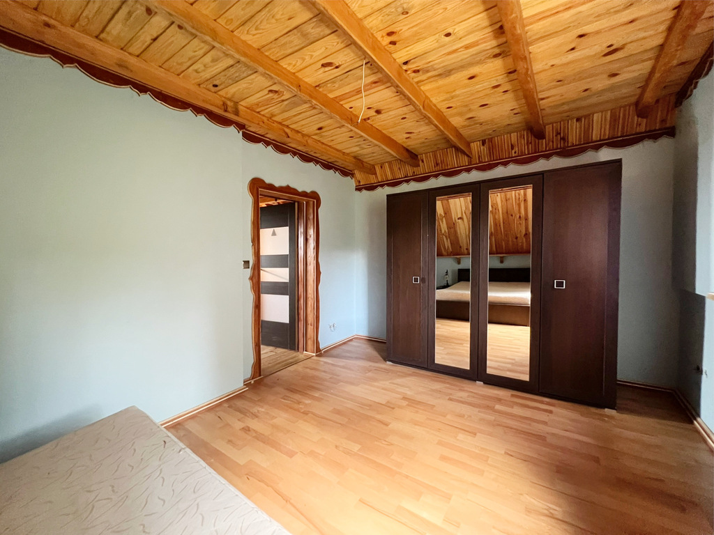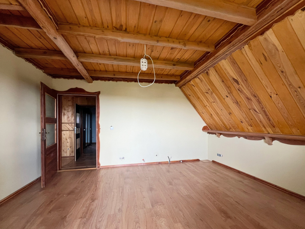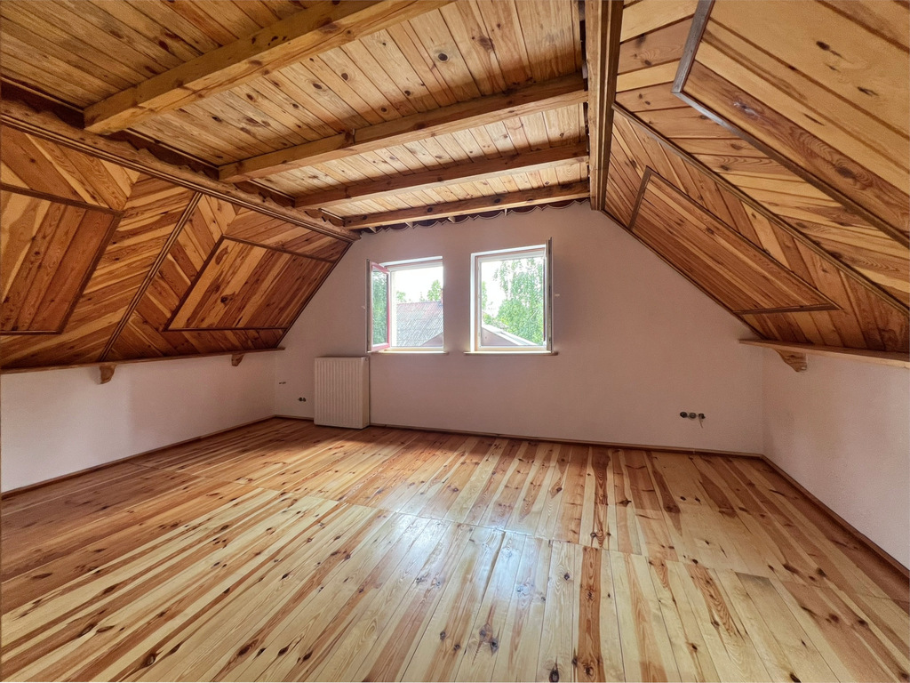 - Budynek z 2006 roku, solidna konstrukcja murowana, ocieplony styropianem (10cm), dach pokryty blachą, okna PCV.