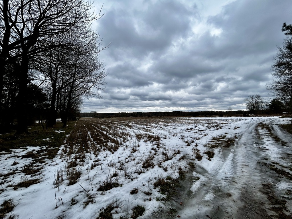 Działka położona w spokojnej okolicy otoczona lasem oraz polami.